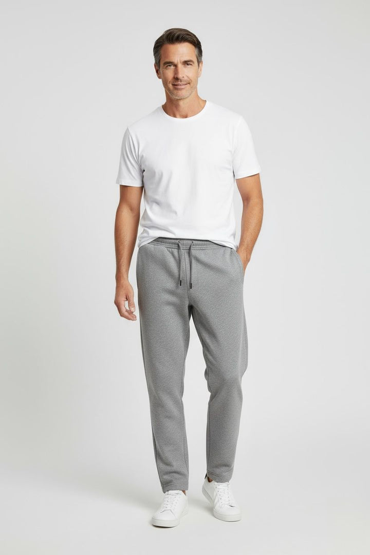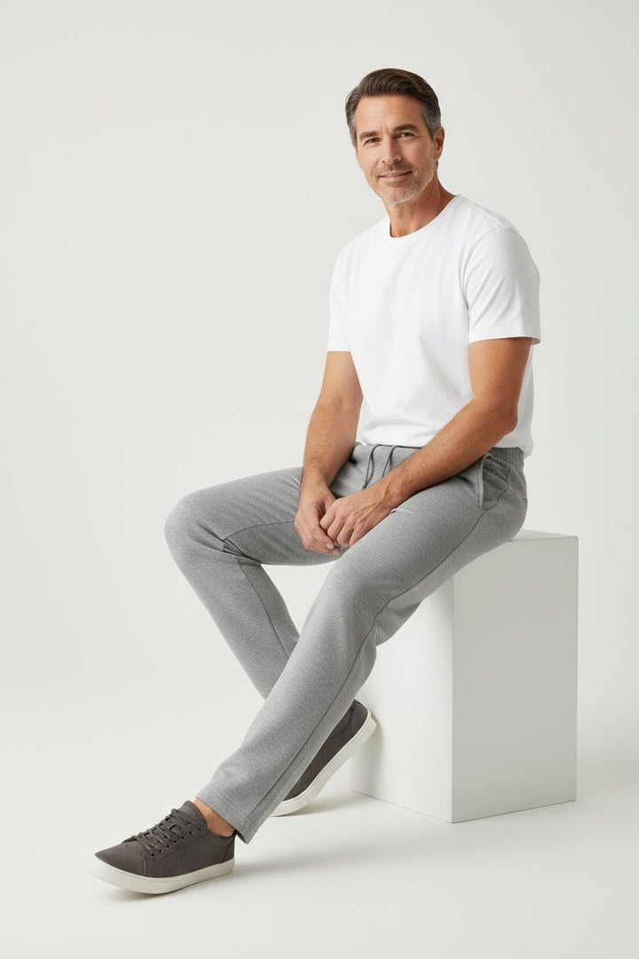 Soft and smooth fabrication, Stretch for added comfort and ease of wear, Relaxed yet tapered silhouette, Elastic waist with interior drawstring, Two front zipper pockets and one back patch pocket, Ribbed ankle cuffs, Signature embroidered Mehari logo