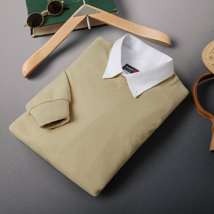 V NECK SLIM FIT PULLOVER Cafe